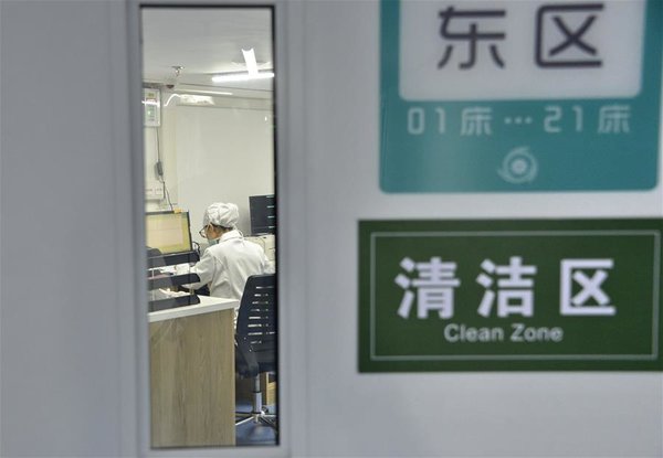 Medical staff work at Xiaotangshan Hospital in Beijing, capital of China, March 30, 2020. Xiaotangshan Hospital, which was previously used to quarantine SARS patients in Beijing, saw its first patient of the novel coronavirus disease (COVID-19) discharged after recovery on Monday. The hospital, located in the city's northern suburb, was renovated and put into operation on March 16 for the screening and treatment of imported mild and common confirmed COVID-19 cases, suspected cases and those who need to be tested. The hospital is operating smoothly and orderly. As of Sunday, it received 2,002 people from overseas. A total of 43 confirmed cases of COVID-19 were reported from the hospital. In the treatment and control of SARS, or Severe Acute Respiratory Syndrome, which spread rapidly on the Chinese mainland in 2003, Beijing built Xiaotangshan Hospital, a temporary medical center, in just a week. [Xinhua/Li Xin]