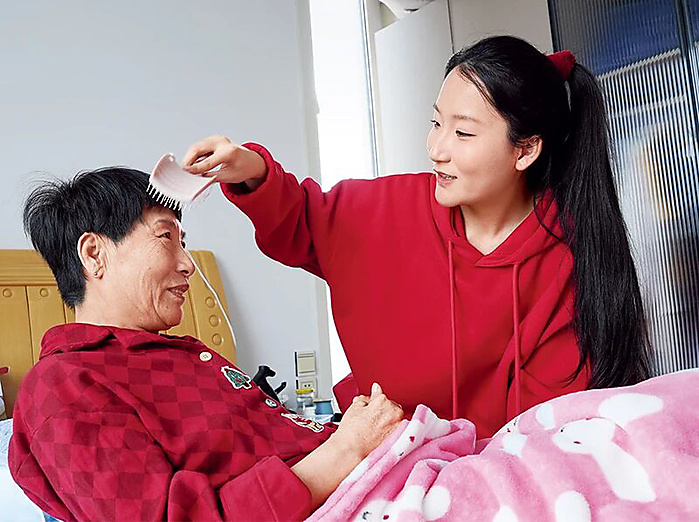 For Liu, massaging and cooking for her mother have been part of her daily routine for more than a decade. She has never stopped taking care of her mother, not even when she was preparing to write the national college entrance exam.