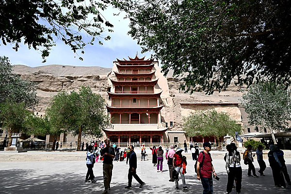 Tourists visit Mogao Grottoes in Dunhuang, northwest China's Gansu Province, May 19, 2025. [Photo by Zhang Xiaoliang/Xinhua] |