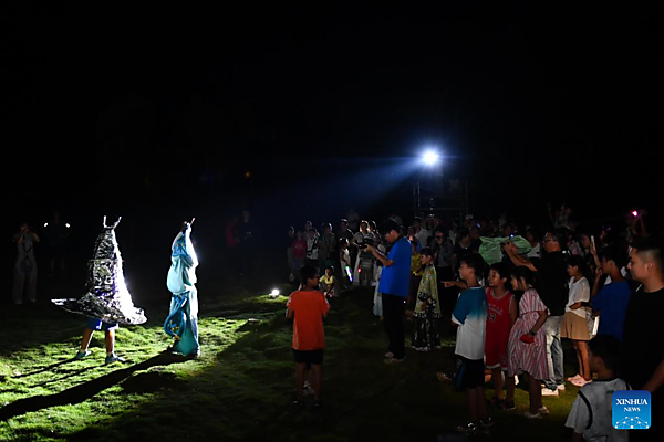 Children perform a drama at the Dayuan Center for Community Arts and Culture in Dayuan Village of Ningyuan County, central China's Hunan Province, Aug. 23, 2025. [Xinhua/Chen Zhenhai] |
