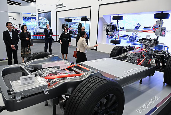 Foreign guests visit an exhibition hall of the headquarters of BYD in Shenzhen, south China's Guangdong Province, July 22, 2024. [Xinhua/Li He] |