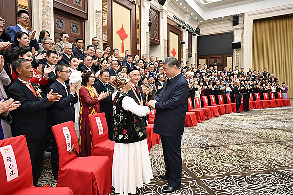 Chinese President Xi Jinping, also general secretary of the Communist Party of China Central Committee and chairman of the Central Military Commission, meets with representatives from all ethnic groups and all walks of life in northwest China's Xinjiang Uygur Autonomous Region, in Urumqi, the regional capital, Sept. 23, 2025. [Xinhua/Xie Huanchi] |