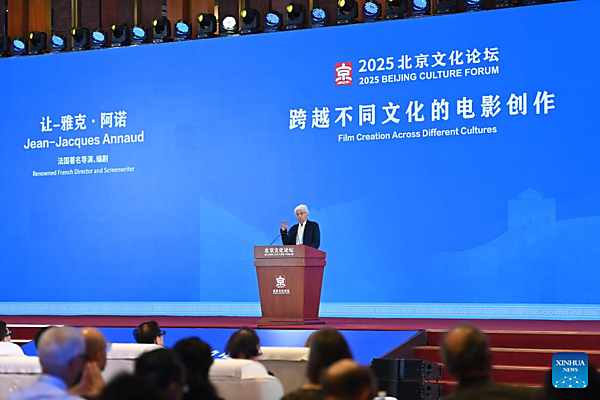 French director and screenwriter Jean-Jacques Annaud delivers a speech titled "Film Creation Across Different Cultures" during the 2025 Beijing Culture Forum in Beijing, capital of China, Sept. 23, 2025. [Xinhua/Xiao Xiao] |