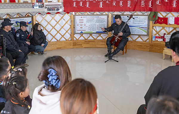 "Our performance goes to every place where herders live," Oyunjargal said. He and troupe members loaded their instruments and sound equipment onto a flow stage bus and drove to a border guard station in Jihuulengt Gacha of Erenuur Sumu, bringing a cultural performance to border patrolmen and herders there.