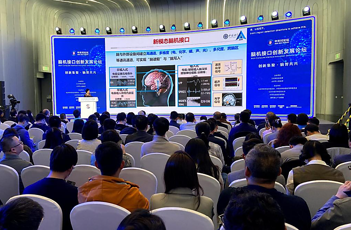| This photo taken on March 27, 2026 shows a scene at the Brain-Computer Interface Innovation Development Forum, a session of the 2026 Zhongguancun Forum (ZGC Forum) Annual Conference, in Beijing, capital of China. [Xinhua/Wei Mengjia] |