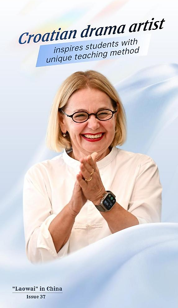 XI'AN, Oct. 9 (Xinhua) — Vitomira Loncar is a renowned Croatian playwright, actress, and producer. After retiring in 2016, she chose to move to China with her husband and began teaching courses such as intercultural communication and project management at Xi'an Eurasia University. She transforms dramatic arts into a teaching language, guiding students to understand knowledge and connect with the world through emotion and imagination.