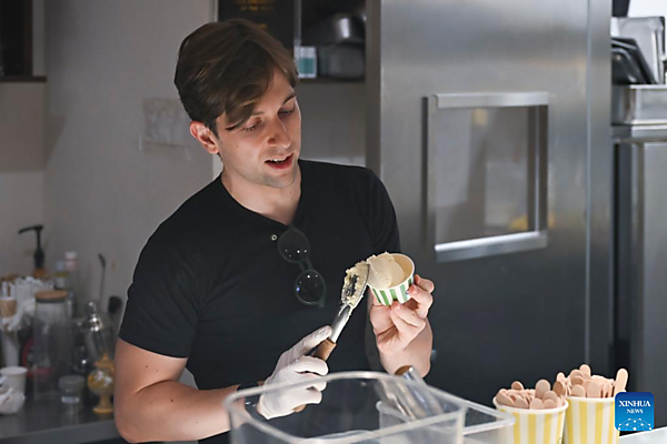 | Alessandro Conti displays an ice cream at his gelato shop in Shanghai, east China, Sept. 30, 2025. At the Hengshan-Fuxing Roads (Hengfu) Historic Protection Zone in Shanghai's Xuhui District, there is a shop named Amuni Gelato, offering Italian-style ice cream. The owner of the gelato shop is Alessandro Conti. The connection between Conti and China began during his student years. He studied Chinese at the University of Palermo and later went to Chongqing in southwest China as an exchange student. With a bachelor's degree in simultaneous interpretation, he is fluent in Italian, English, and Chinese. "I've lived in many cities in China, but Shanghai is my favorite," Conti said. "It's international and diverse, and offers everyone the opportunity to express themselves." It is Conti's preference for Shanghai that motivated him to settle down in Shanghai and start his own business. As an Italian food vlogger and entrepreneur based in Shanghai, Conti believes that Shanghai's openness and inclusiveness are catalysts for young entrepreneurs. "Setting up a company here is convenient. From registration to the business license offering, the efficiency is remarkable," said Conti. "I want to build up my family and my future here." [Xinhua/Chen Haoming] |