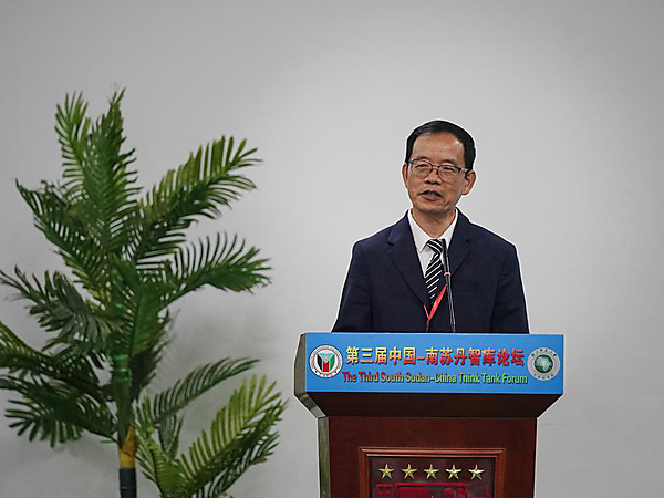 | Liu Hongwu, director general of the Institute of African Studies of Zhejiang Normal University, addresses the third South Sudan-China Think Tank Forum in Juba, South Sudan, April 12, 2024. [Xinhua/Han Xu] |