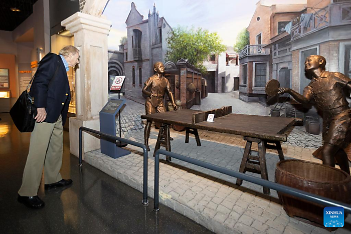 | A visitor from the United States visits the International Table Tennis Federation Museum and the China Table Tennis Museum in Shanghai, east China, April 14, 2026. [Xinhua/Wang Xiang] |