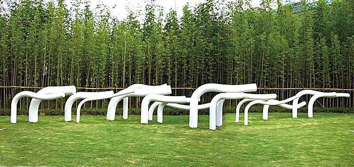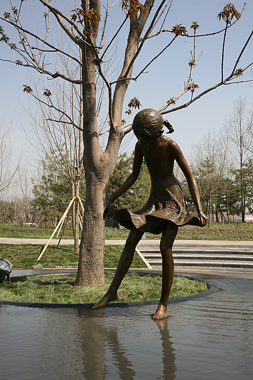"Urban sculptures meet the public every day, and they need to eliminate the sense of distance from the people," Zhou says. That insight, she adds, was gained from years of dedication to public art creation. Her 2003 sculpture, Listening to Water, embodies that philosophy.