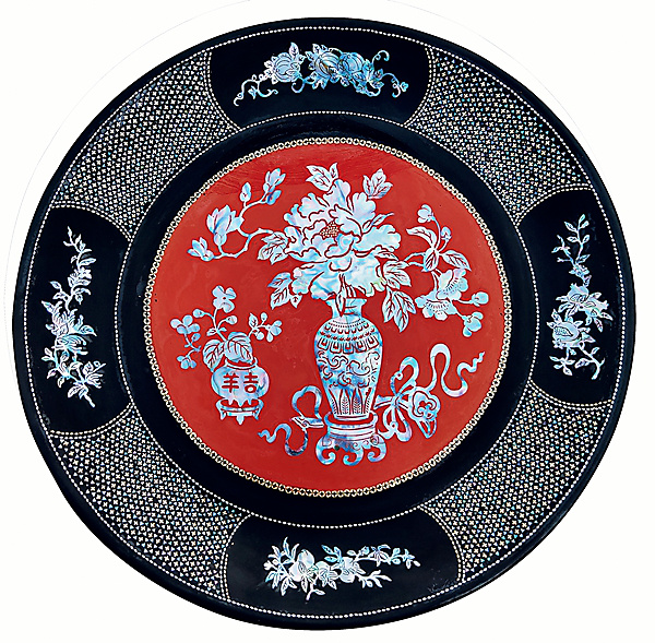 The combination of lacquer and mother-of-pearl can be traced back nearly 3,000 years. During the Shang and Zhou dynasties (1600 BC-256 BC), artisans began decorating lacquerware with shell pieces. Lacquerware inlaid with mother-of-pearl reached its golden era during the Tang Dynasty (618-907). During that time, the works were not only exquisite in shape, but also superb in craftsmanship. The current decoration technique of Jishan-style mother-of-pearl-inlaid lacquerware was derived from the technique used during the Tang Dynasty.