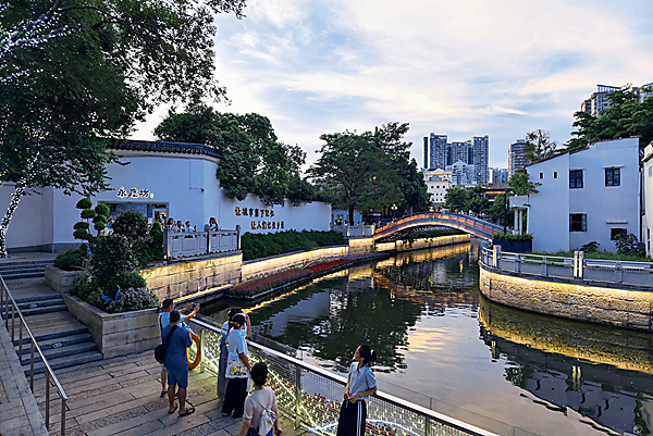 This scenic area, along the Pearl River, encompasses the antique Xiguan Street (in Liwan District), where well-preserved qilou (arcade houses), bustling markets and tranquil canals evoke the city's past as a trading hub.