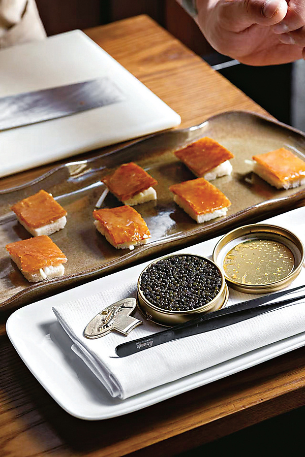 One menu item is ordered by virtually every table — Peking duck, served with caviar. The dish is special, as it took Zhou and her team nearly four years to create and refine.