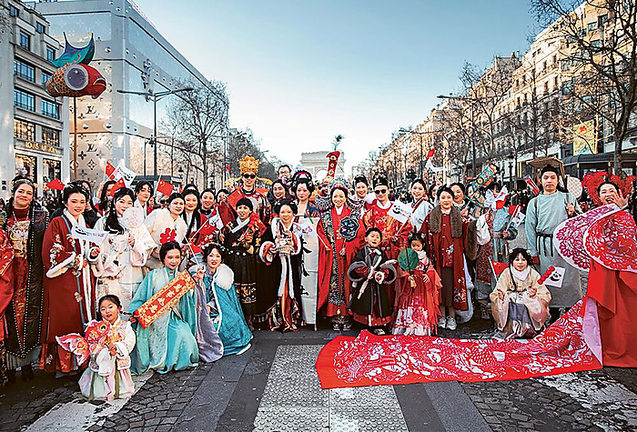 This year, to celebrate Spring Festival, Association Mugua organized another hanfu formation during the Avenue des Champs-Elysees parade, on February 1, 2026. The association added the traditional yi dance (court dance), and elements of classical dances from the Han (206 BC-220 AD) and Tang (618-907) dynasties, to showcase more elements of Chinese culture. The association's members also showcased China's Spring Festival culture — in town halls, universities, primary and secondary schools, cultural institutions and commercial centers — across France.