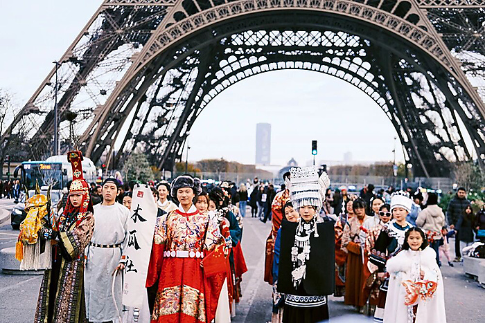 In February 2025, to celebrate the first Spring Festival after the Chinese holiday was added to UNESCO's Representative List of the Intangible Cultural Heritage of Humanity, a parade was held on the Avenue des Champs-Elysees. Members of Association Mugua participated, parading in hanfu, and they drew the attention of both locals and tourists, who clamored to take photos of the hanfu-clad marchers. Avenue des Champs-Elysees, which is 100 meters wide in places, was packed with spectators. Liu was heartened by the admiring looks from the bustling crowd. "In recent years, hanfu has gained increasing popularity and recognition overseas," she says.