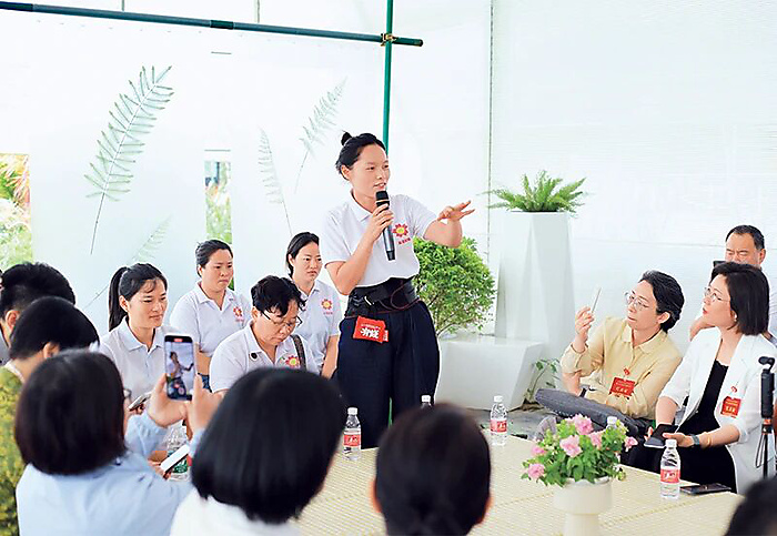 About studying and implementing the spirit of the fourth plenary session of the 20th Central Committee of the Communist Party of China, Huang says, "The Henglan Women's Federation will work to develop the digital economy and rural revitalization. Based on the 'guiding, serving and connecting' functions of the 'Flower Promoter Sisters' Women's Federation, we will focus on the needs of women in floriculture as we build a digital-marketing system. Aiming to build the 'Flower Promoter Sisters' IP (Intellectual Property), and acting as policy and floriculture promoters, skills trainers and online connectors, we will empower women's income growth and industrial development, and we will inject women's strength into rural revitalization."
