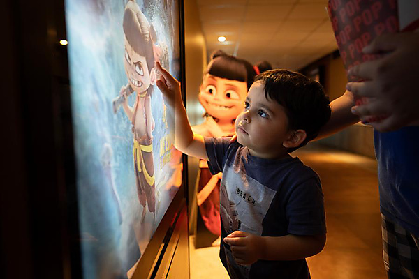 A boy points at a poster for the premiere of Chinese animated film "Ne Zha 2" in a cinema in Buenos Aires, Argentina, on Oct. 2, 2025. [Photo by Martin Zabala/Xinhua] |