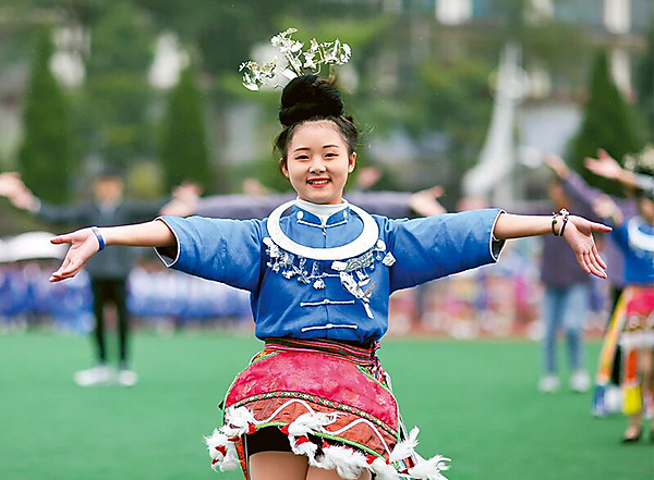 Li has set up after-school courses on Jinji Dance in some primary schools in Danzhai, and she has compiled teaching material targeted for primary school students. Today, it is common to see local children performing the dance on campus, and they are breathing new life into this ancient art form.