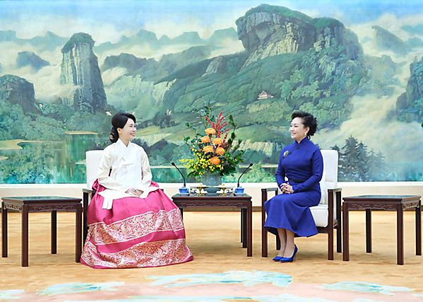 Peng Liyuan Chats over Tea with Wife of ROK President