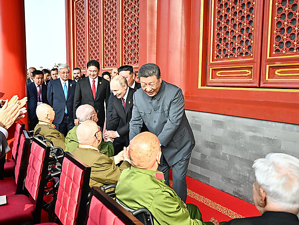 BEIJING, Sept. 8 (Xinhua) — At Beijing's Tian'anmen Square, Chinese President Xi Jinping, together with world leaders, attended on Wednesday morning a grand military parade honoring both China's victory and the collective triumph of nations that overcame fascism eighty years ago.