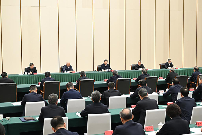 | Chinese President Xi Jinping, also general secretary of the Communist Party of China Central Committee and chairman of the Central Military Commission, chairs a symposium on further advancing the high-quality construction and development of the Xiong'an New Area in the Xiong'an New Area, north China's Hebei Province, March 23, 2026. Xi inspected the Xiong'an New Area on Monday, when he also chaired the symposium. [Xinhua/Yan Yan] |