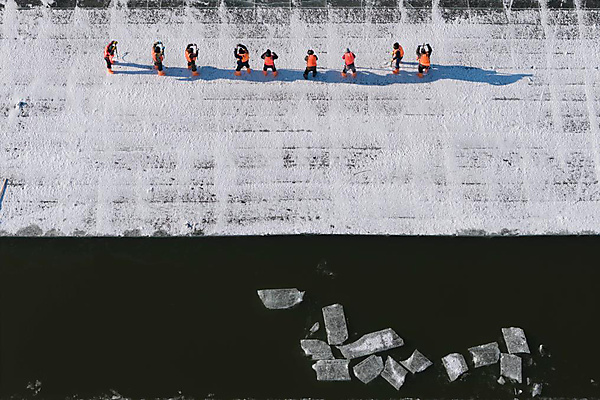 | An aerial drone photo shows an ice collection area at the Harbin section of Songhua River in Harbin, northeast China's Heilongjiang Province, Dec. 9, 2025. [Xinhua/Wang Song] |