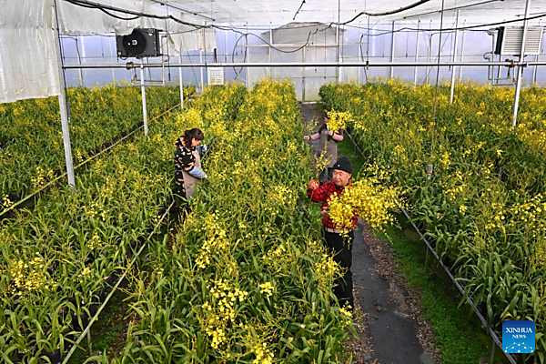 Staff members sort and pack oncidium in Puyuan Township of Zhouning County, southeast China's Fujian Province, Jan. 15, 2026. With the approach of the Spring Festival, the market for high-altitude, cold-tolerant flowers has been steadily heating up. Inside the greenhouses of various flower enterprises, flowers in Zhouning County are blooming in full swing. Workers are busy with picking, pruning, shaping, and packaging to ensure sufficient market supply during the holiday season. Relying on its unique alpine cool climate and superior natural environment, Zhouning County has vigorously developed the high-altitude, cold-tolerant flower industry in recent years. [Xinhua/Jiang Kehong] |