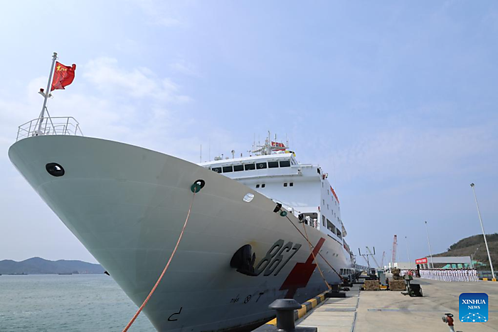 | The Chinese People's Liberation Army (PLA) Navy hospital ship, Silk Road Ark, is docked at a military port in Sanya, south China's Hainan Province, April 26, 2026. [Photo by Cui Xiaoyang/Xinhua] |