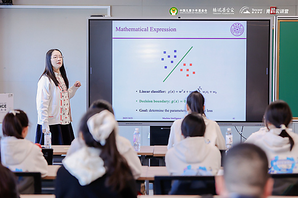 Dr. Wang Yaqing, from the Beijing Institute of Mathematical Sciences and Applications, talked with the girls about the mysteries behind artificial intelligence and underscored women's unique strength in sci-tech research.