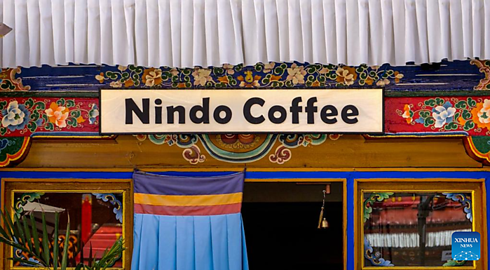 | This photo taken on Sept. 23, 2025 shows an exterior view of a shop of Nindo coffee in Lhasa, southwest China's Xizang Autonomous Region. [Xinhua/Purbu Tsering] |