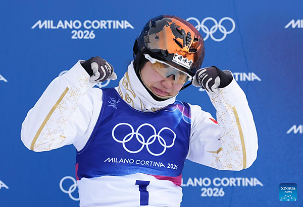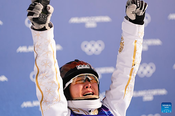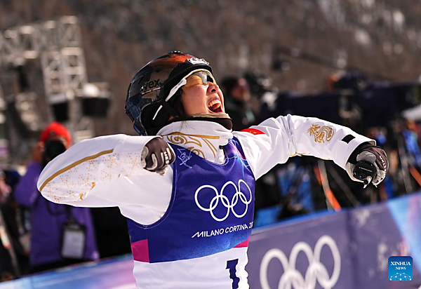 LIVIGNO, Italy, Feb. 18 (Xinhua) — China's defending Olympic champion Xu Mengtao capped her fifth Winter Games with gold on Wednesday, winning the women's freeski aerials final at the Milan-Cortina Olympics.