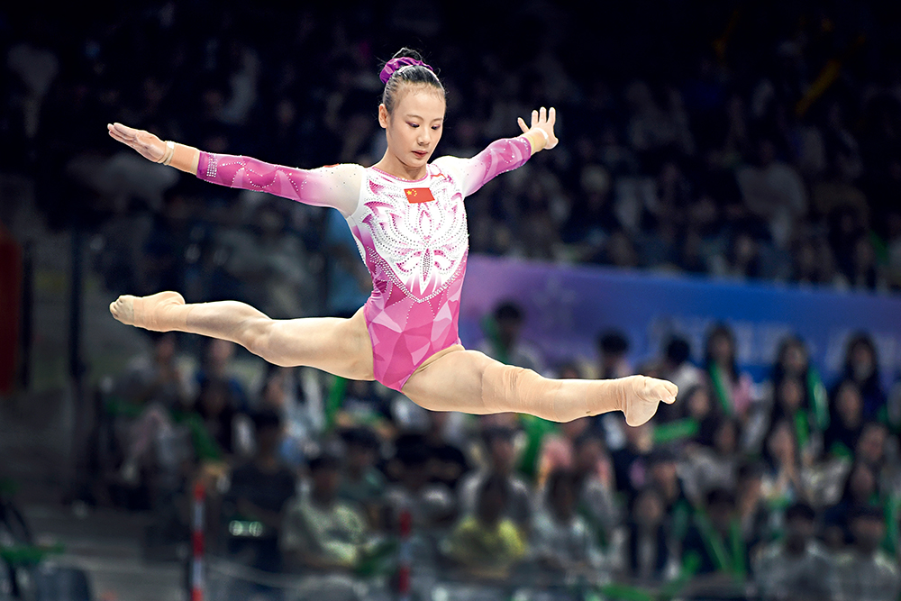 An athlete competes during China's national gymnastics championships. [Photo by He Xiaoyu]