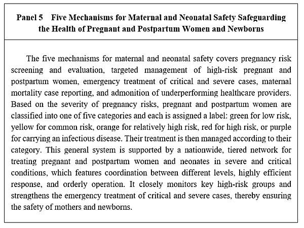 The "internet plus maternal and child healthcare" service model has been developed, and training sessions and guidance for treating pregnant and postpartum women in severe and critical conditions have been provided through 31 provincial-level "cloud-based maternal and child healthcare" telemedicine platforms, making maternal and child healthcare services much more equitable.