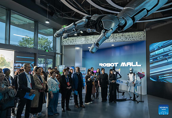 Representatives, who are in Beijing for the Global Leaders' Meeting on Women, visit the Beijing World of Robots in Beijing, capital of China, Oct. 14, 2025. [Xinhua/Du Zixuan]