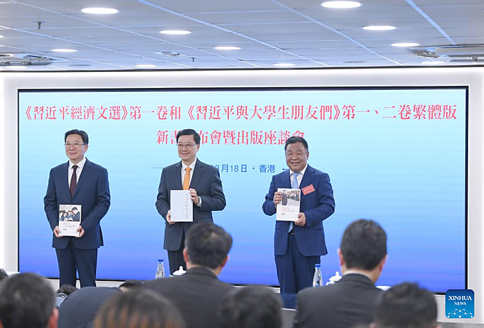 HONG KONG, March 18 (Xinhua) — The first volume of Selected Works of Xi Jinping on Economy, along with two volumes of Xi Jinping and University Students, made their debut in Hong Kong on Wednesday.
