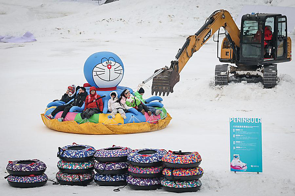 | Visitors play on snow at a hot spring resort in Shenyang, northeast China's Liaoning Province, Jan. 9, 2026. [Xinhua/Li Gang] |