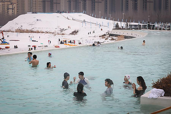 | Visitors enjoy outdoor hot spring at a hot spring resort in Shenyang, northeast China's Liaoning Province, Jan. 9, 2026. [Xinhua/Pan Yulong] |